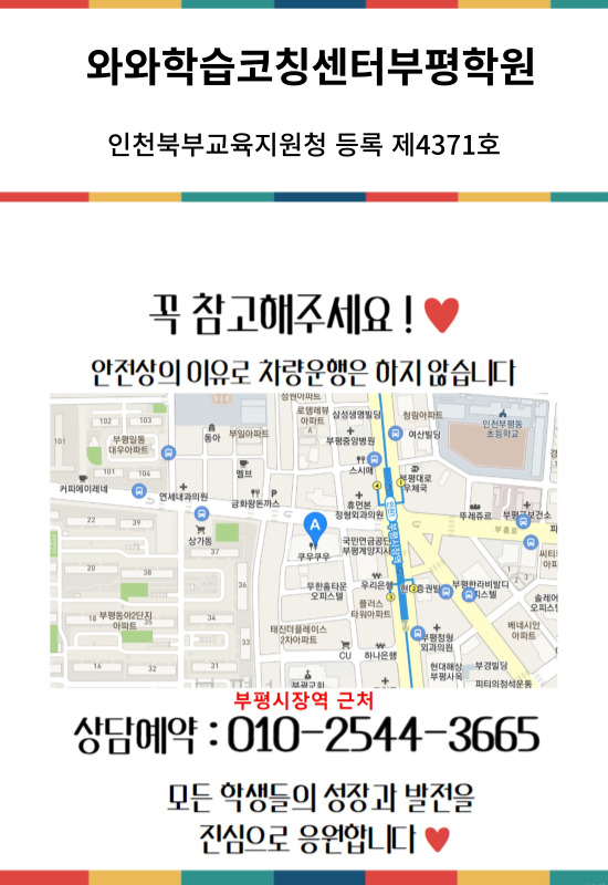 | 부천 범박동 중등 수학학원 영어학원 초등 국어학원 중학생 고등 내신 전문 대비 소수정예 (0) | 2023.05.27 |