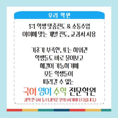 | 굴포천 영수학원 중학생 국어학원 고등 내신관리 초등 (0) | 2021.07.23 |